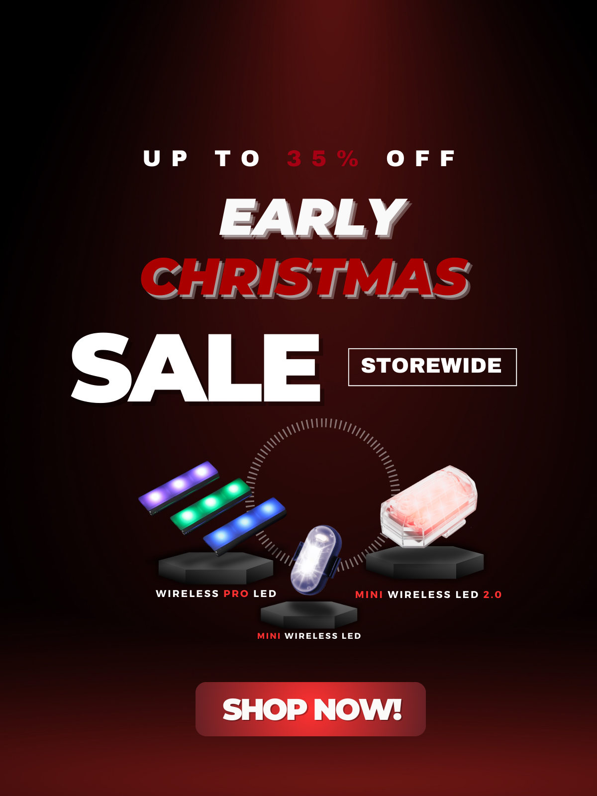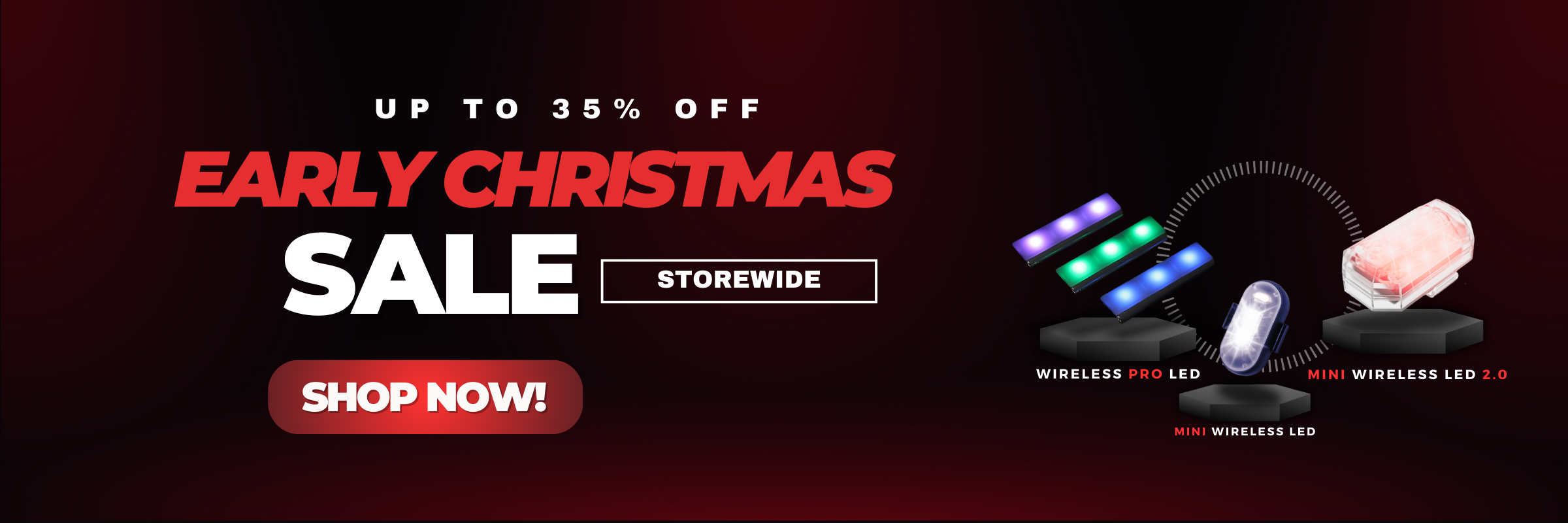 Being both Rechargeable and Wireless, add a few extra horse power to your ride by illuminating it with our wireless LED lights.